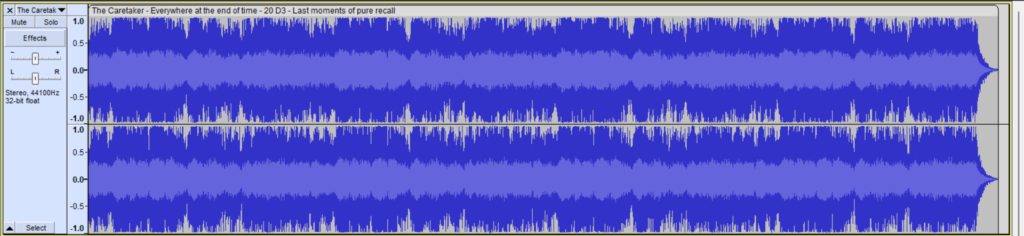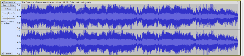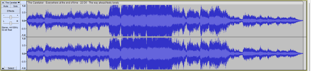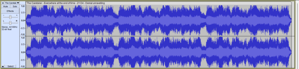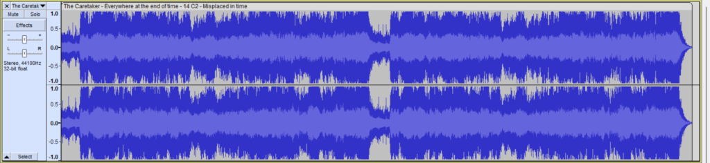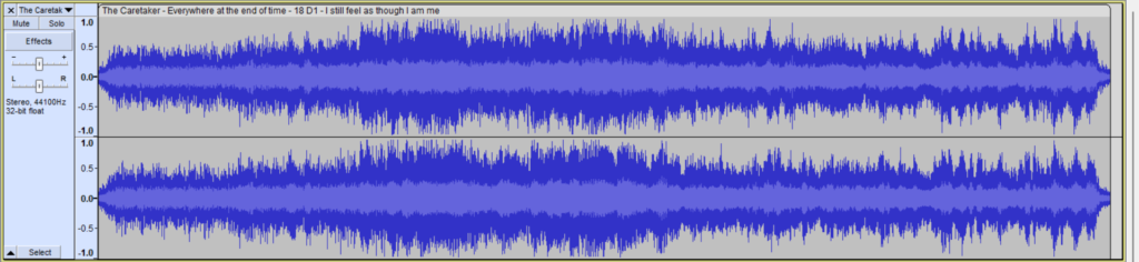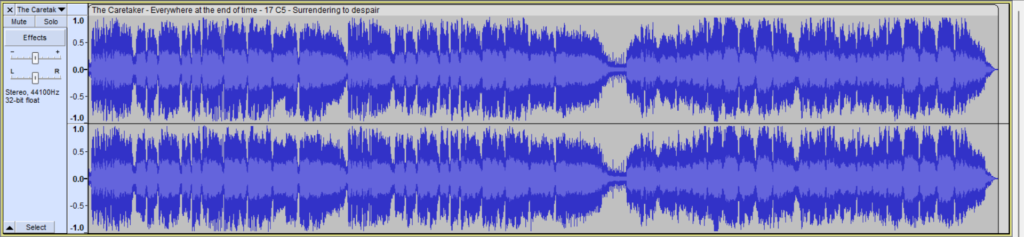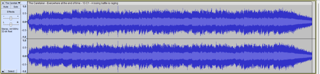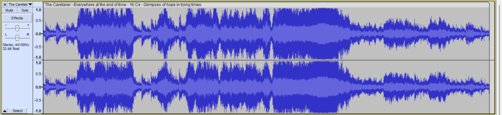 In Stage 2, the static creates a sense of cloudiness and uncertainty, almost as if the brain recognizes that something is wrong but refuses to acknowledge it. However, some tracks in this stage have little to no static behind them at all. This may represent temporary moments of lucidity in The Caretaker, where they are able to focus well enough to recall memories fairly well.