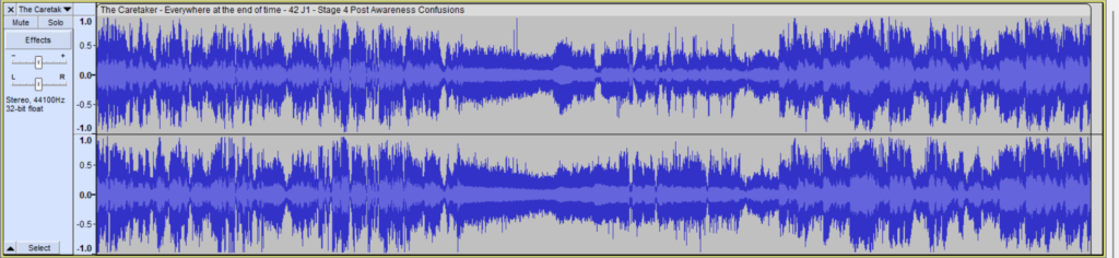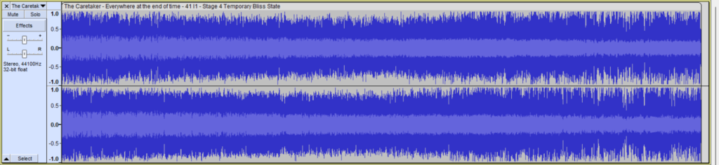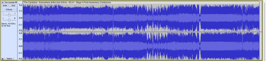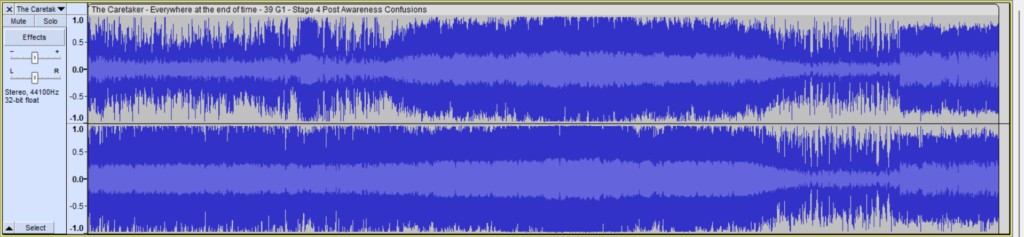 There are barely any short samples of music anymore, and each track spans around 20 minutes. The names of tracks are less symbolic, and become more logical (Stage 4 Post Awareness Confusions & Stage 4 Temporary Bliss State). This may represent how The Caretaker is now unable to coherently label anything that’s happening around them.